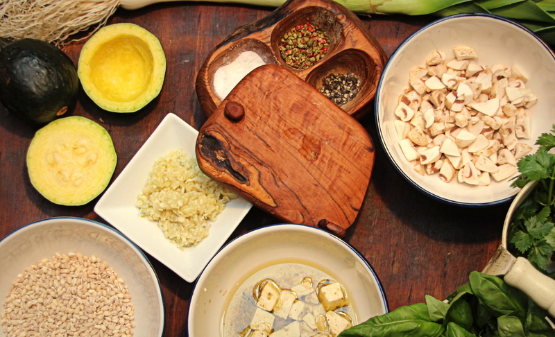 Baby gems are cross between a small pumpkin and a zucchini. They are a size of a cannonball, hence the nickname: cannonball squash. I feel these little guys hold almost an intensified sweetness compared to squashes that grow much larger and the natural sugars are a lovely mellow combination to the earthy flavours of the pearl barley. Serve this with any meat dish, or as a perfect starter for a vegetarian.