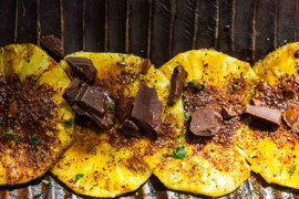 Grilled Pineapple with a Crushed Ginger, Black Pepper, Mint and Dark Chocolate Gremolata.