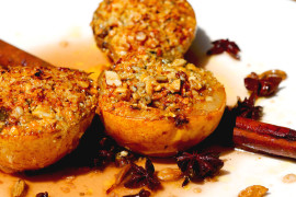 This dessert is pure decadence. Perfumed pears poached in lightly scented waters, filled to the brim with the food of love...pistachios, almonds, ...