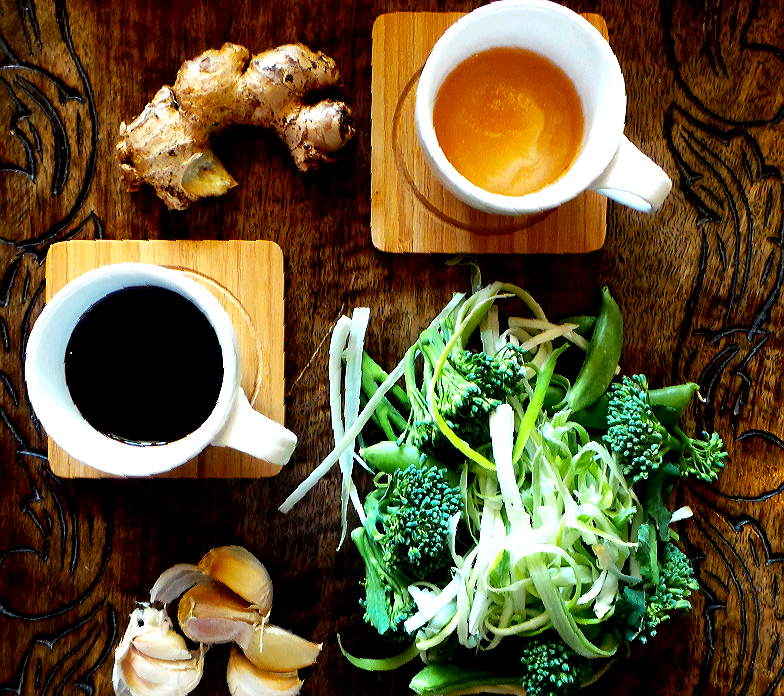 3 cups mixed green vegetables of your choice. (I’ve used broccoli, mangetout, shavings of spring onion and roughly cut pak choi)
