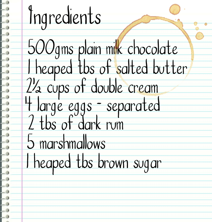 This I have to admit, came about as a result of having a bowl of egg yolks lying in the fridge from all the egg whites I used for the my Brandied Strawberry Pavlova (recipe coming soon). This turned out as a luxuriously rich mousse, that I confess I have eaten, regularly and unashamedly, in bed – no sharing of course!