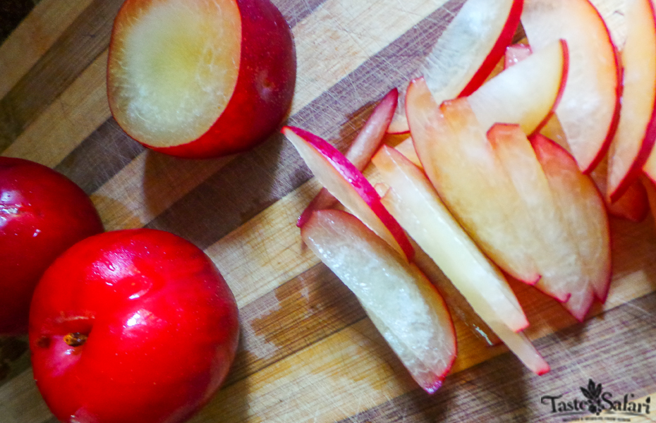 In the meantime, prepare the plum salsa. Slice the plum into small wedges.