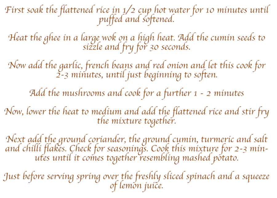 Flattened puffed rice is easy to find in any ethnic food store and can be either deep fried and seasoned with Indian spices for a crispy snack or use it as I do in this recipe – showing its versatility in its preparation.
