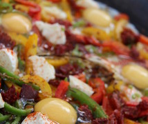 Cornmeal, Smoke Sausage, Herbs and Cherry Tomato Brunch Bake